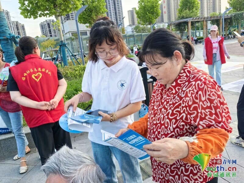 圖為實(shí)踐團(tuán)成員為居民講解金融反詐知識(shí)。黃蕾 供圖